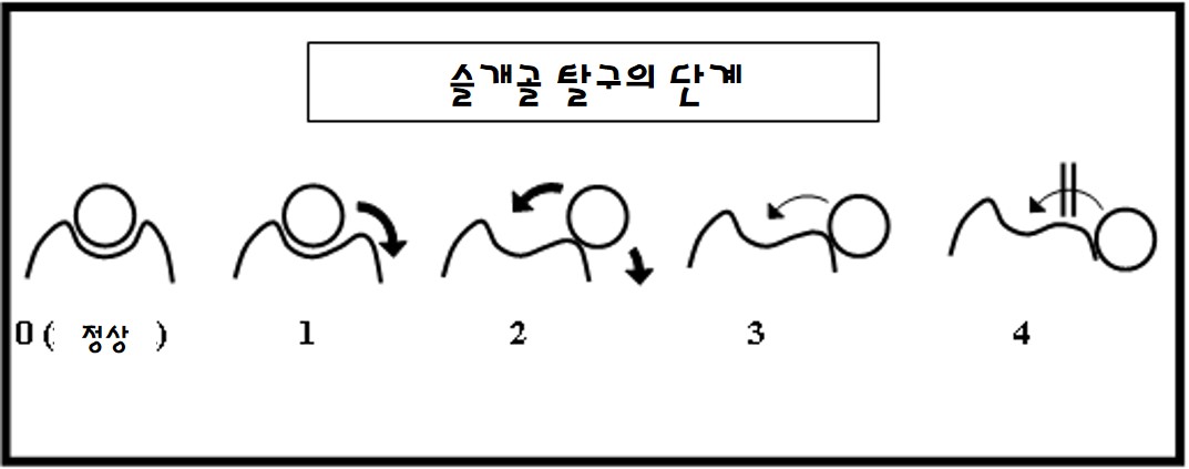 1단계 : 슬개골이 대부분 원래 위치에 있음. 억지로 밀면 슬개골이 빠지지만 힘을 빼면 원래대로 돌아옴, 가끔 다리를 들고 걸음.